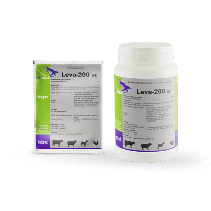 Leva-200 WS – Levamisole is a synthetic anthelmintic with activity against a broad spectrum of gastrointestinal worms and against lung worms.