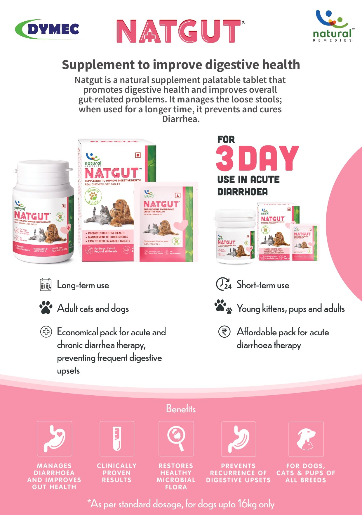*As per standard dosage, for dogs upto 16kg only