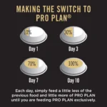 MAKING THE SWITCH TO PRO PLAN®: By choosing to feed your dog PRO PLAN you can be reassured that our tailored nutrition will have a positive impact on your dog’s long-term health and well-being. Although you will be keen to see the difference PRO PLAN can make in your dog, please allow 7 – 10 days to transition from their current food. This enables your dog’s digestive enzymes to gradually adapt to the change in ingredient and nutritional content, assisting with the proper digestion of the food and helping prevent stomach upsets. Each day, simply feed a little less of the previous food and a little more of PRO PLAN until you are feeding PRO PLAN exclusively.